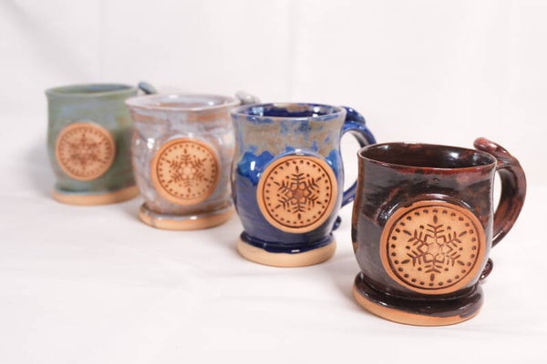 ❄️ Invitez la magie de l’hiver dans votre quotidien avec les mugs Flocons, façonnés à la main dans mon atelier en Normandie. Chaque mug est orné d’un poinçon en forme de flocon de neige, délicatement apposé avant cuisson, pour une touche hivernale tout en finesse.